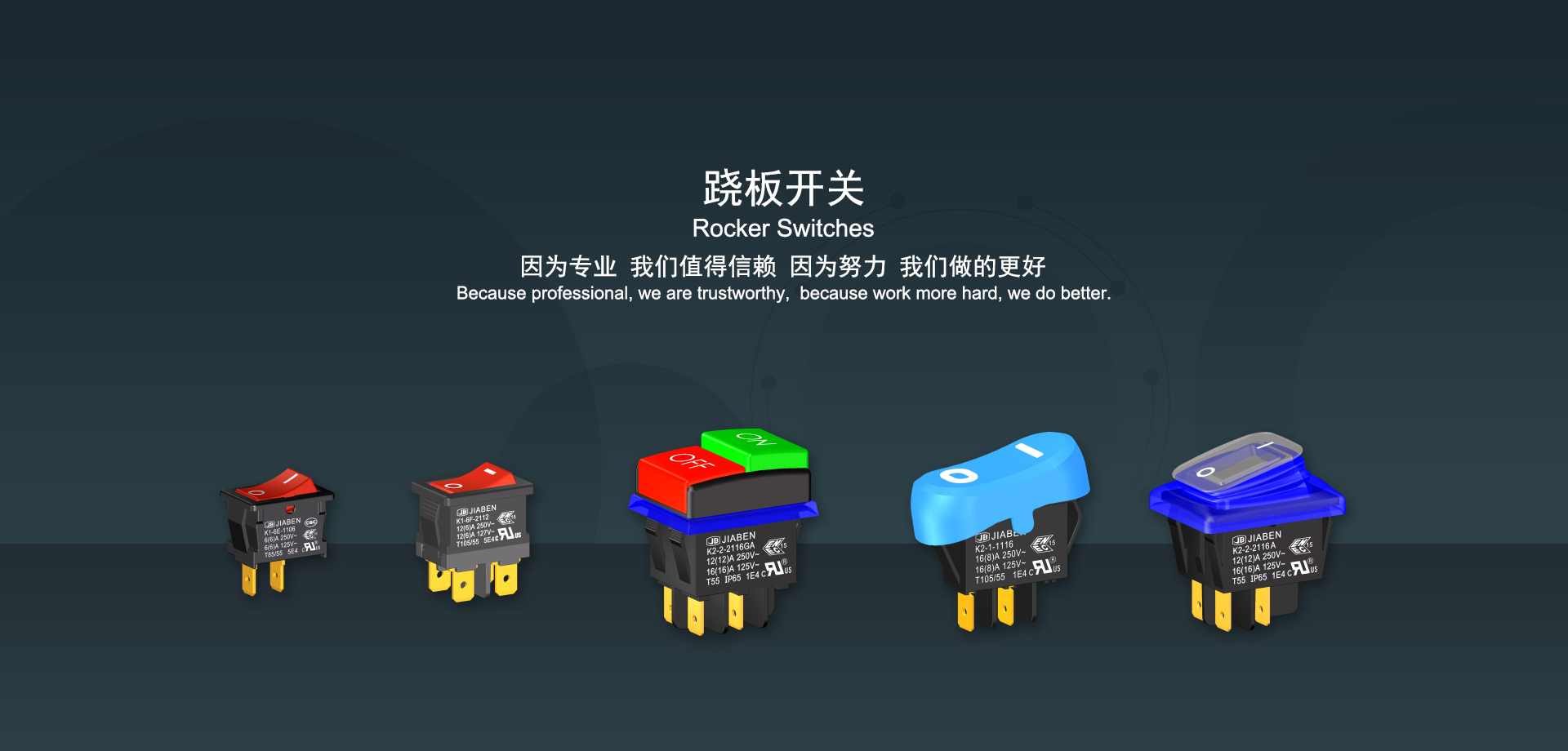 浙江佳奔電子有限公司始建于1986年,坐落于浙江省樂清市虹橋鎮(zhèn)東電子信息產(chǎn)業(yè)園內(nèi),現(xiàn)有職工700多人,資產(chǎn)總額超3億元。公司主要經(jīng)營“JIABEN”牌微動開關、蹺板開關、按鈕開關、扳機開關、調(diào)速開關和電位器開關等各類交、直流器具開關和各類交、直流線路板模塊等產(chǎn)品,主要應用于交、直流電動工具、電動園林工具、清潔器具、家用電器和小型機床等行業(yè),是集產(chǎn)品設計、研發(fā)、制造、銷售和服務于一體的國家高新技術企業(yè)。JIABEN was founded in 1986, located in East Electronic Information Industry Park, Hongqiao Town, Yueqing City, Zhejiang Proviance, existing staff more than 700 peoples, more than 300 million RMB worth of assets. Company is mainly engaged in "JIABEN" brand Micro Switch, Rocker Switch, Push-button Switch, Trigger Switch, Speed Regulating Switch, Potentiometer Switch and other kinds of appliance switch and all kinds of AC or DC circuit board module, such as more than 100 series, 8000 kinds of models of products, mainly used in AC or DC Power-tools, Power Gardening Tools, Cleaning Appliances, Household Appliances and Small Machine Tool and other industries, is the collection product design, research and development, manufacturing, sales and service in one of the national high and new technology enterprise.
